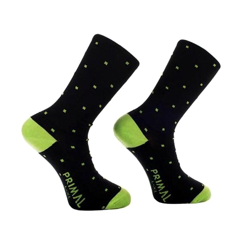 Skarpetki rowerowe PRIMAL Icon tall Model: PRIMAL POLKA socks Materiał: 50% Acrylic, 25% Nylon, 15% Spandex i 10% Lycra® Rozmiar: S/M (rozmiar EU: 36-42), L/XL (rozmiar EU: 42-46) Skarpetki rowerow...
